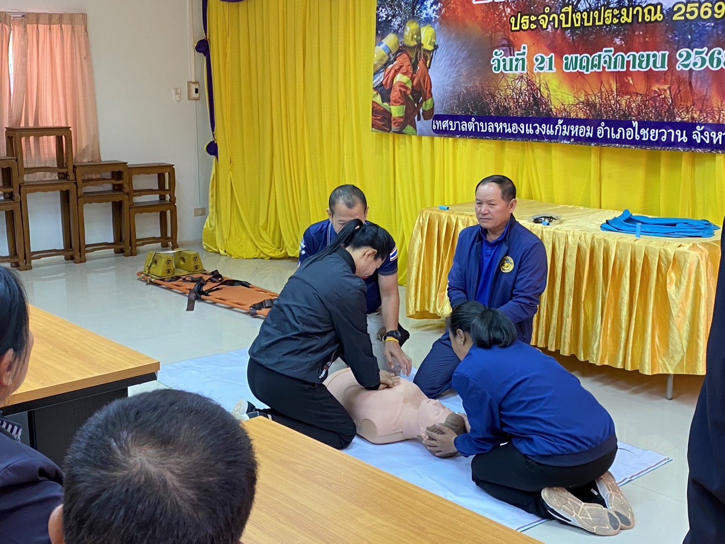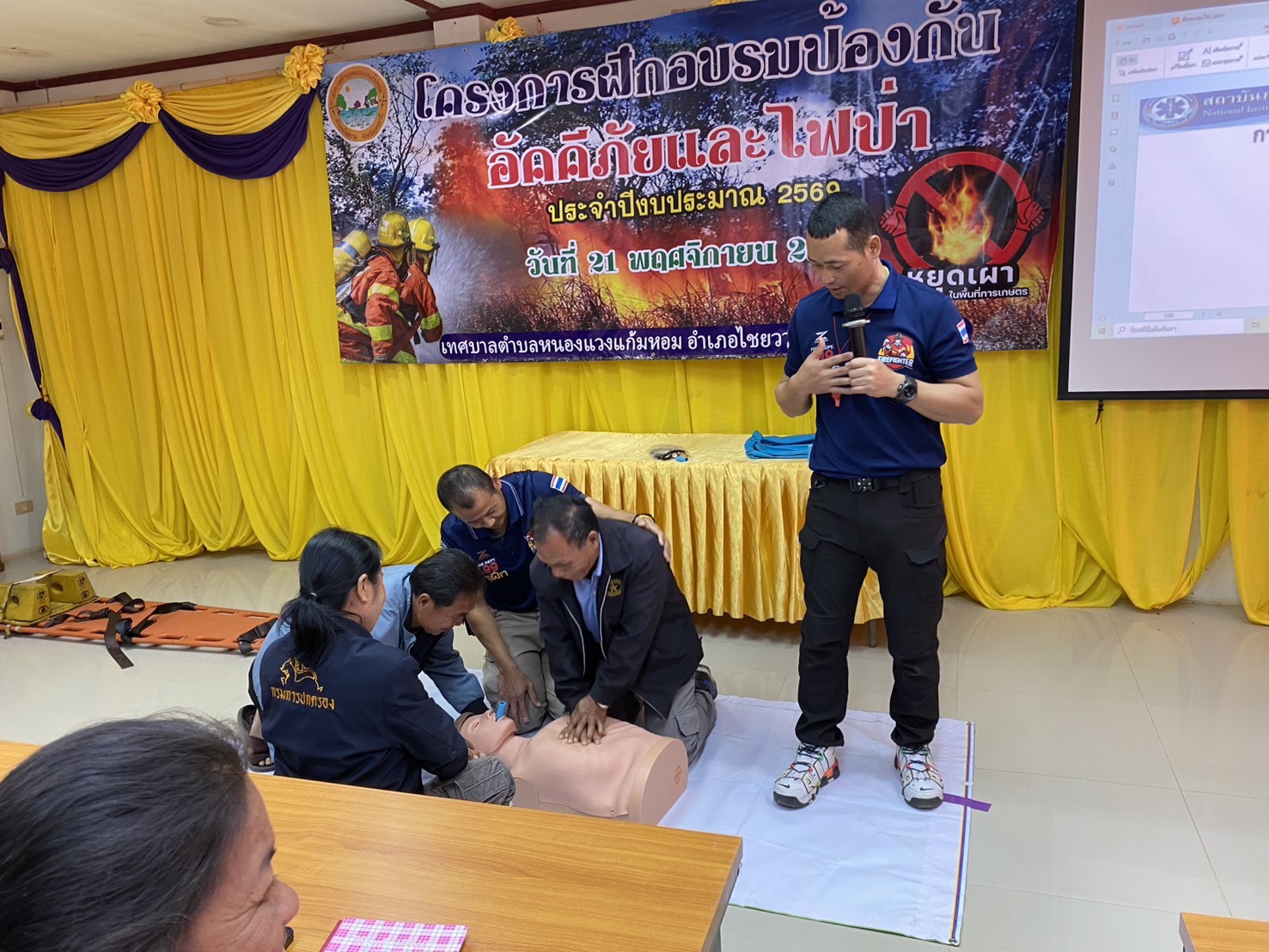 งานป้องกันและบรรเทาสาธารณภัยได้จัดโครงการฝึกอบรมอัคคีภัยและไฟป่า ประจำปีงบประมาณ 2569